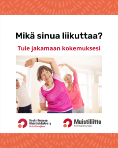 Muistiliitto kehittää viestintämateriaalia, jonka avulla kannustetaan muistisairaita ja läheisiä kokeilemaan liikuntapalveluja. Tätä varten haluamme kuulla…
