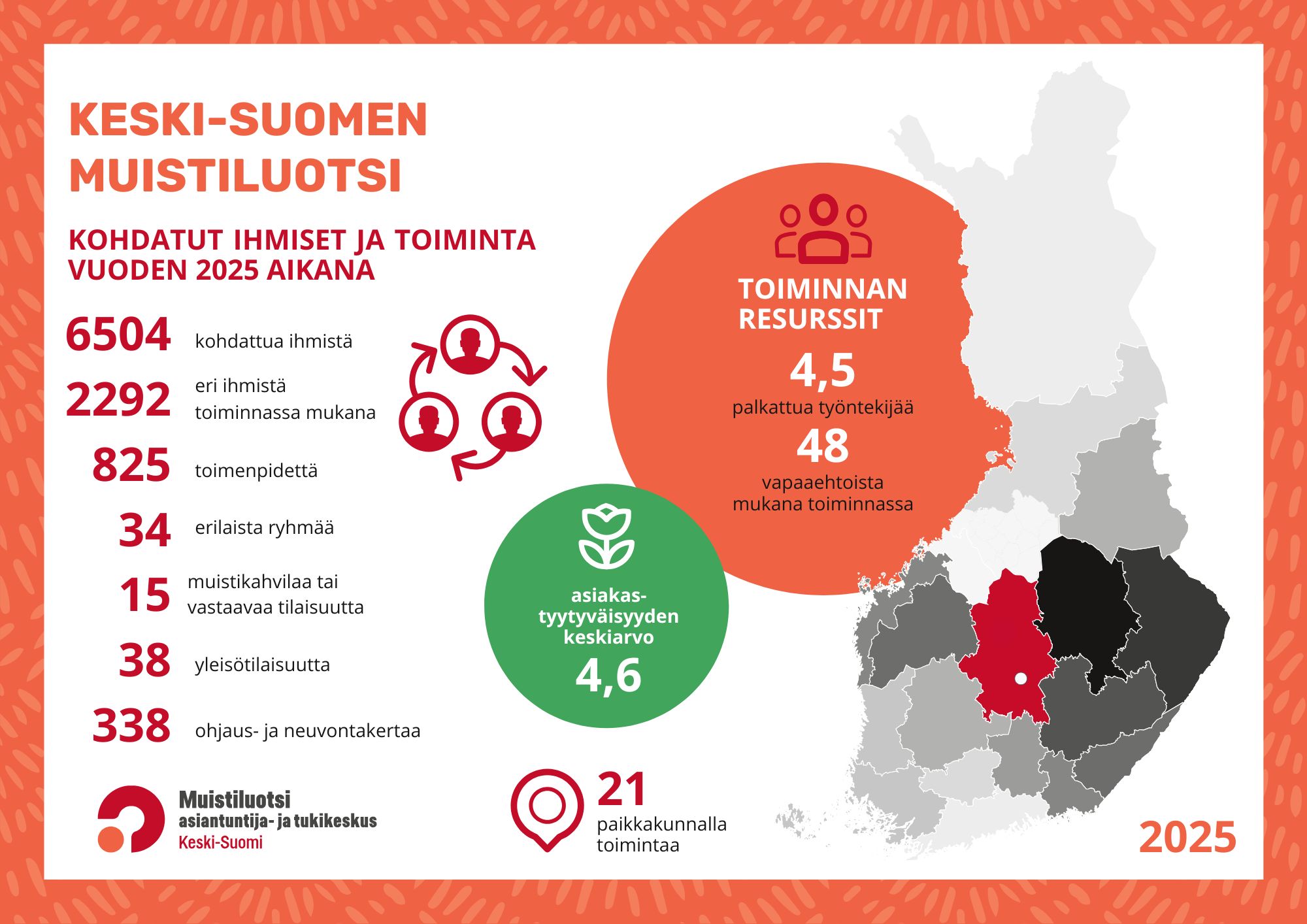 Keski-Suomen Muistiyhdistyksen muistiluotsien vuoden 2025 toiminta lukuina: