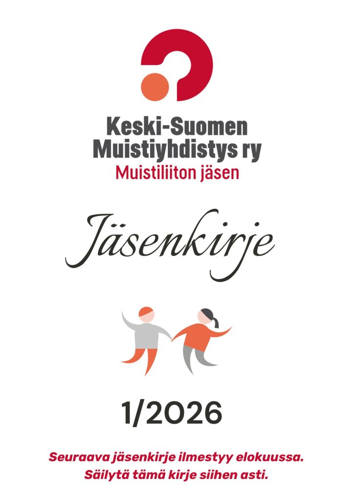Jäsenkirjeeseen on koottu Keski-Suomen Muistiyhdistyksen ajankohtainen toiminta, kerrotaan mm. jäseneduista sekä välitetään yhdistyksen hallituksen puheenjohtajan terveiset. Uusi jäsenkirje on luettavissa täältä.